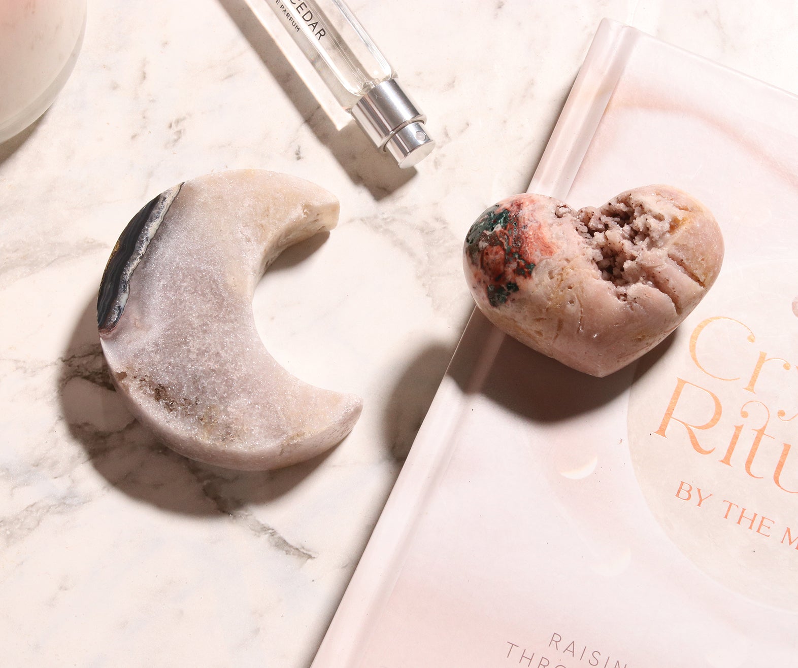 The Agate Moon crystal embodies the flow of the water element, making it a perfect energetic match for fire signs seeking emotional balance. Known for its ability to cleanse and stabilize the aura, Agate helps transmute anger into peace and invites a deeper sense of focus and calm. Its lunar shape is an ode to moon cycles, making it ideal for moon rituals and meditation.