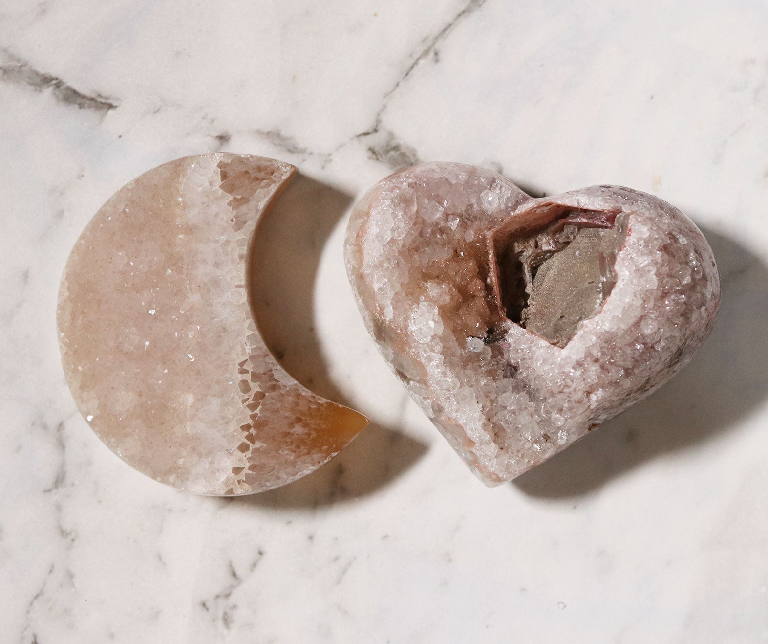 Paired with the Pink Amethyst Heart, this set becomes a potent tool for heart chakra healing. Pink Amethyst radiates soft, loving frequencies that support self-love, compassion, and emotional transformation. It's opens your heart to both give and receive in harmony.