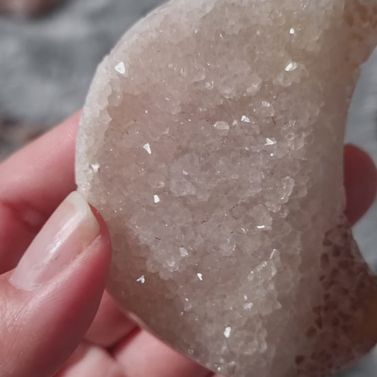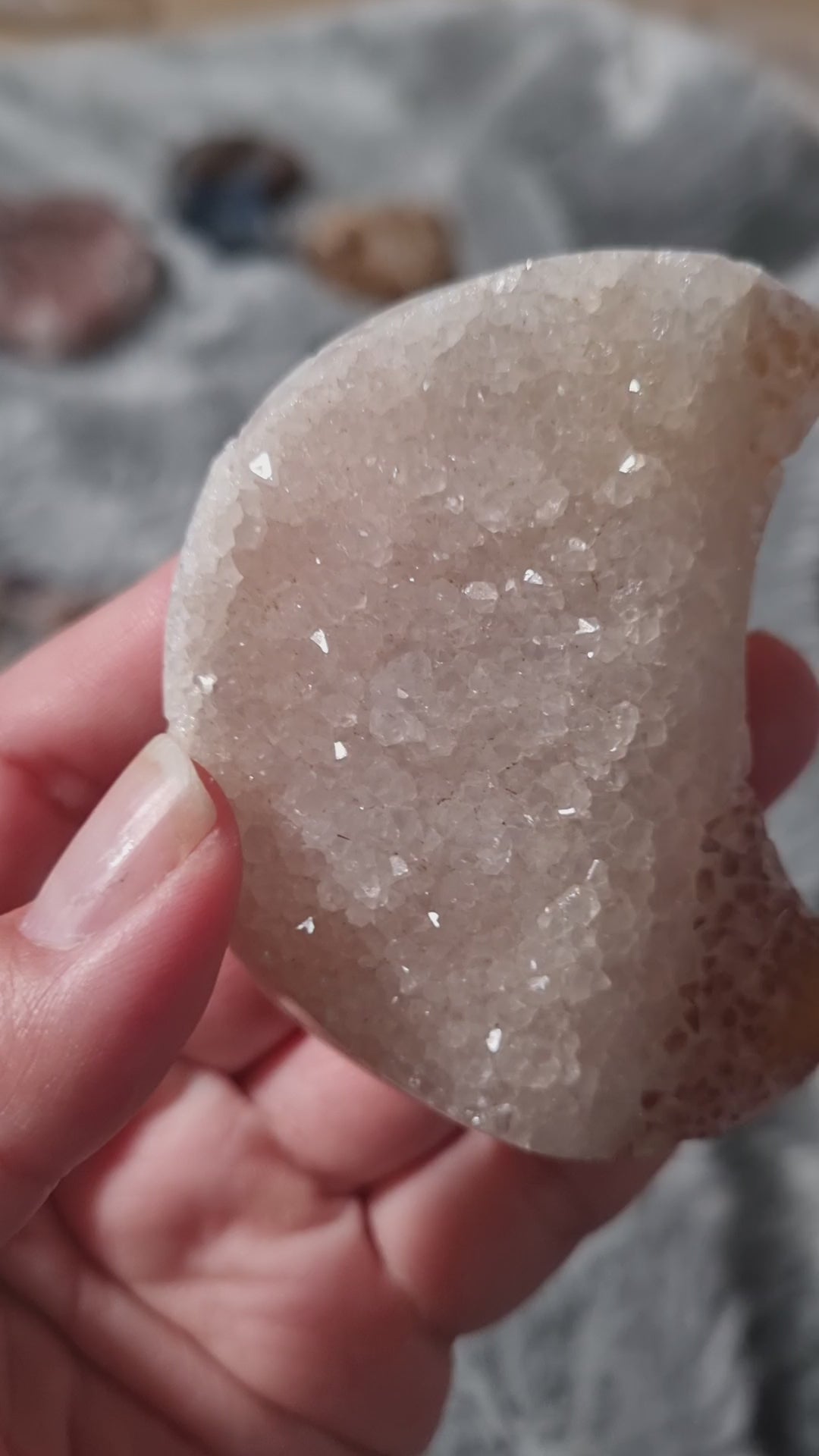 The Agate Moon crystal embodies the flow of the water element, making it a perfect energetic match for fire signs seeking emotional balance. Known for its ability to cleanse and stabilize the aura, Agate helps transmute anger into peace and invites a deeper sense of focus and calm. Its lunar shape is an ode to moon cycles, making it ideal for moon rituals and meditation.