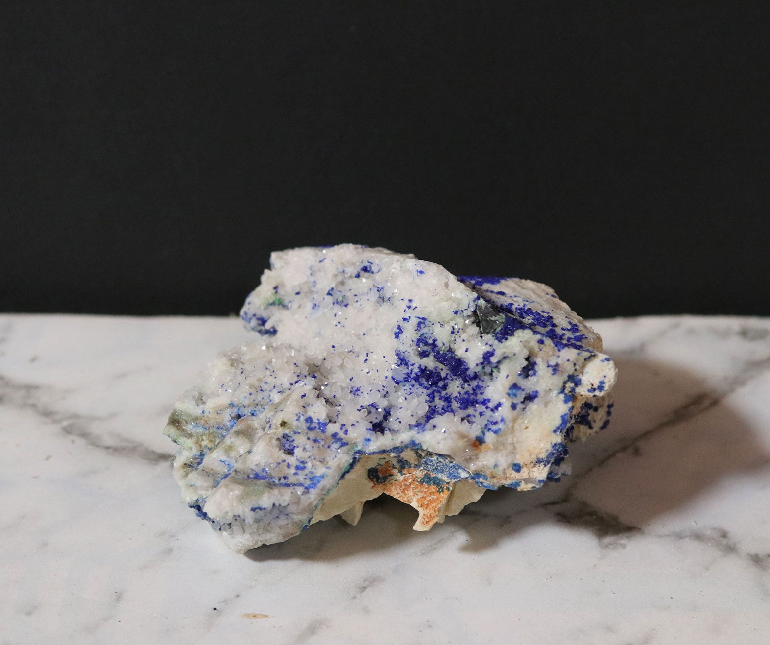 Experience the alchemy of Azurite and Quartz — a powerful union of insight and clarity. Azurite, the Stone of Heaven, opens the third eye and deepens spiritual awareness, while Quartz amplifies and directs this energy for transformation and healing. Together, they awaken intuition, dissolve mental fog, and radiate pure light into your home and heart. A perfect pairing for meditation, sacred rituals, and soulful décor, Azurite and Quartz harmonize your energy and elevate your spiritual journey.