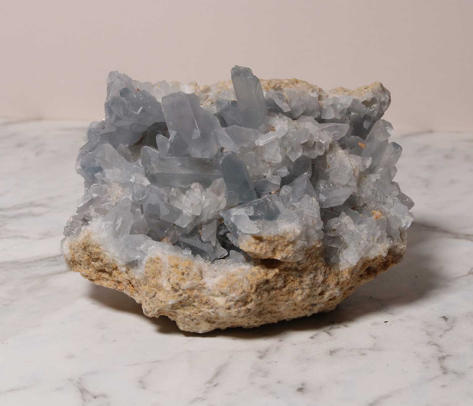 This AA quality Celestite cluster has clear points all over it. It is rare for celestite to have such clear points.