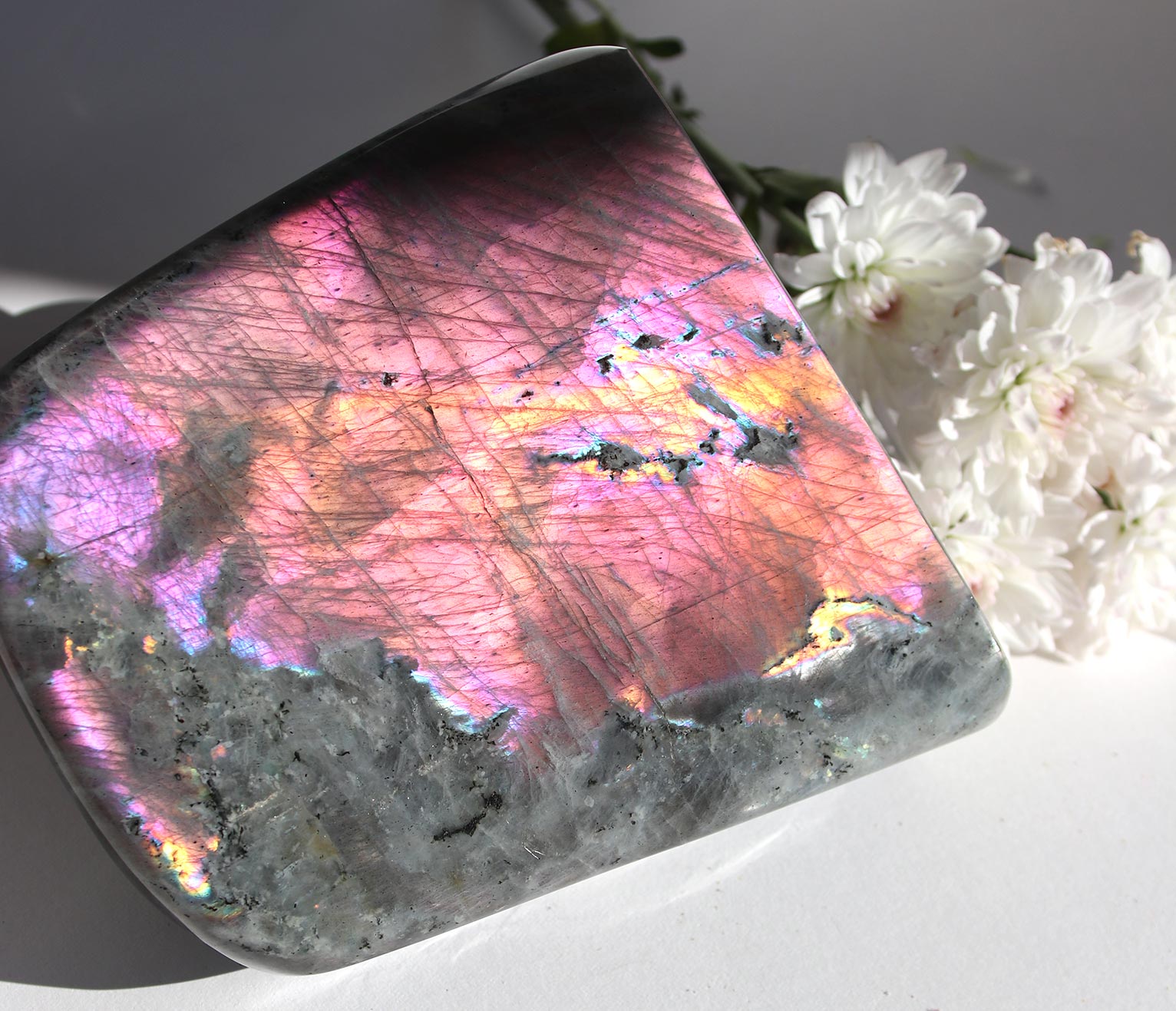 Grey Labradorites transforms energy and guides you on your soul path when you are going through difficult transitions. Compared to a blue labradorite, it improves the flow of energy through your body, making changes in your life easy. It invites more love in and lights the way to find your soul mate and soul families. Most of the time there is only 6 degrees of separation between them and you. Labradorite helps ground and energises the soul. Playing music will not only spark inspiration but strengthens the stones energetic flow.