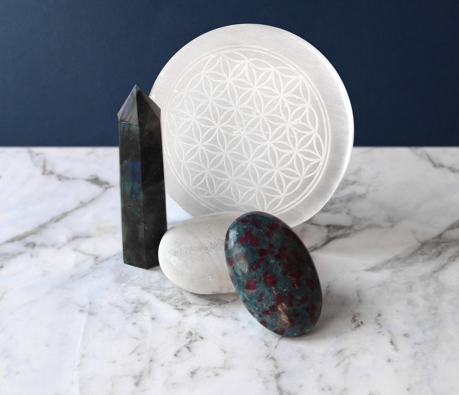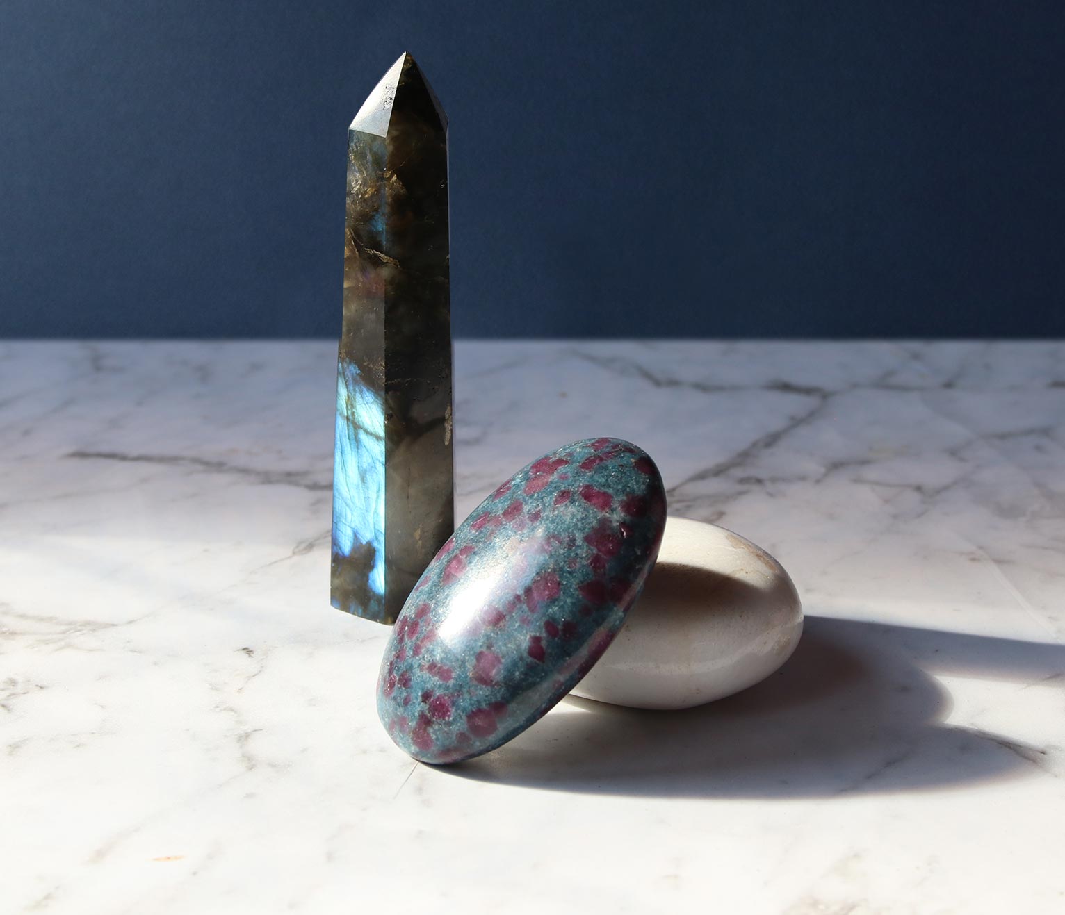 *Labradorite palm stone for transforming stagnant energy and integration.
