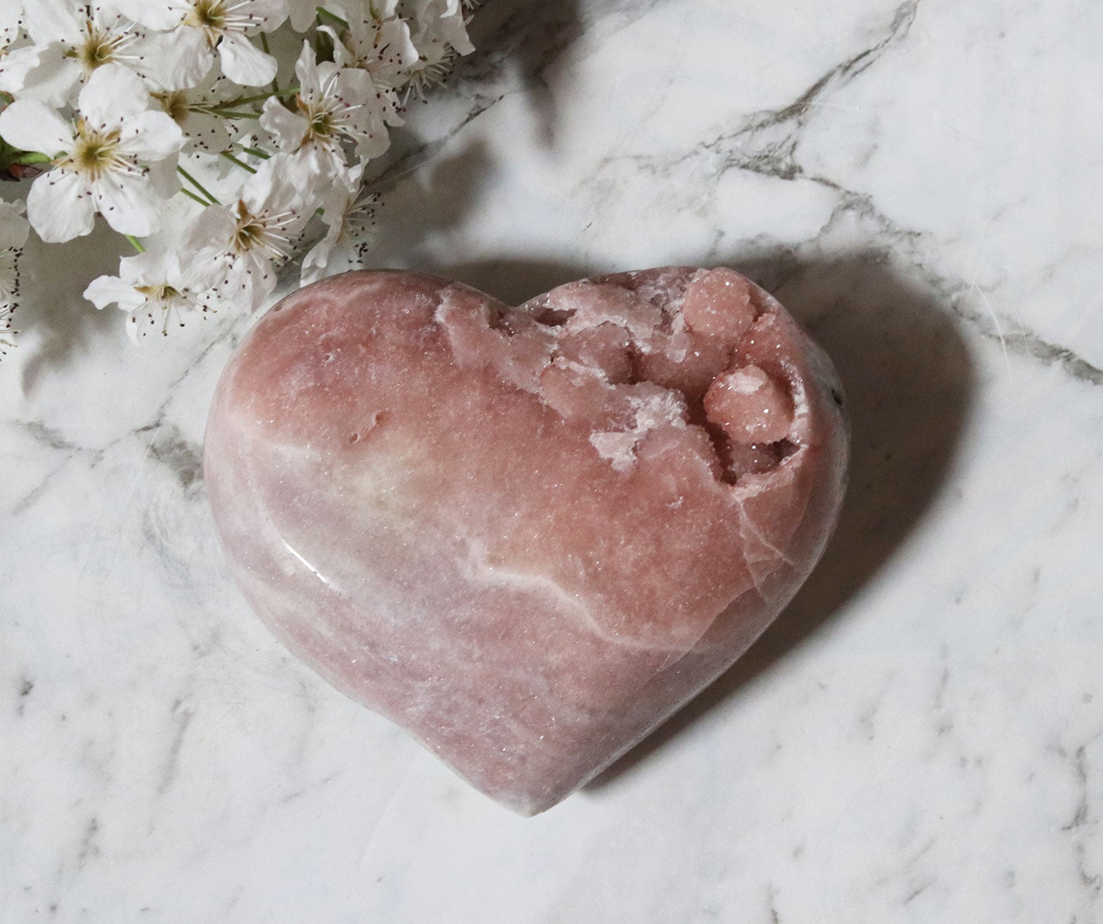 The Pink Amethyst Heart, this set becomes a potent tool for heart chakra healing. Pink Amethyst radiates soft, loving frequencies that support self-love, compassion, and emotional transformation. It's opens your heart to both give and receive in harmony.